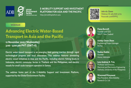 The E-Mobility Support and Investment Platform for Asia and the Pacific is led by the Asian Development Bank (ADB) and supported by the Global Environment Facility, and other partners as part of the Global Electric Mobility Program.